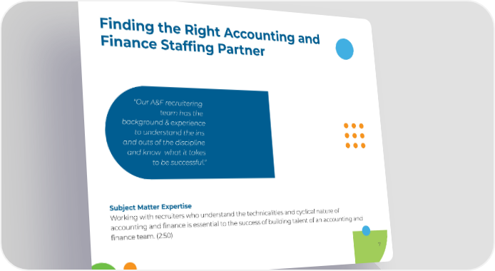 Finding the Right Accounting and Finance Staffing Partner "Our A&F recruitering team has the background & experience to understand the ins and outs of the discipline and know what it takes to be successful." Subject Matter Expertise Working with recruiters who understand the technicalities and cyclical nature of accounting and finance is essential to the success of building talent of an accounting and finance team. (2:50) 7