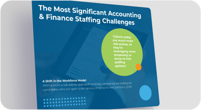 The Most Significant Accounting & Finance Staffing Challenges "Clients today are much more risk-averse, so they’re leveraging more temporary or temp-to-hire staffing options." A Shift in the Workforce Model With a more a risk-averse approach to hiring, companies are looking for candidates who are open to temporary or temp-to-hire positions. (2:09) 5