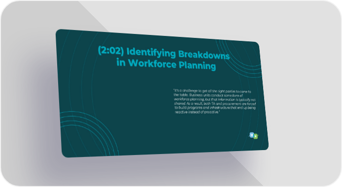 (2:02) Identifying Breakdowns in Workforce Planning “It's a challenge to get all the right parties to come to the table. Business units conduct some form of workforce planning, but that information is typically not shared. As a result, both TA and procurement are forced to build programs and infrastructure that end up being reactive instead of proactive.”