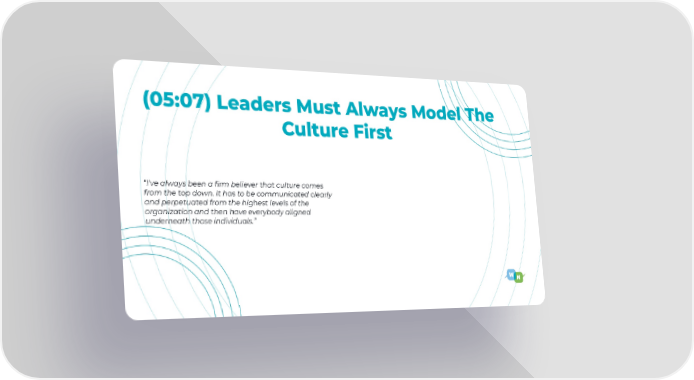 (05:07) Leaders Must Always Model The Culture First “I've always been a firm believer that culture comes from the top down. It has to be communicated clearly and perpetuated from the highest levels of the organization and then have everybody aligned underneath those individuals.”