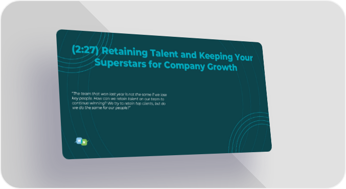 (2:27) Retaining Talent and Keeping Your Superstars for Company Growth “The team that won last year is not the same if we lose key people. How can we retain talent on our team to continue winning? We try to retain top clients, but do we do the same for our people?”