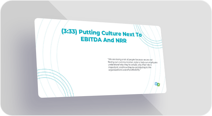 (3:33) Putting Culture Next To EBITDA And NRR “We are losing a lot of people because we are not flexing our communication style to help our employees understand why they're valued, why their role is important, and how they're contributing to the organization's overall profitability.”
