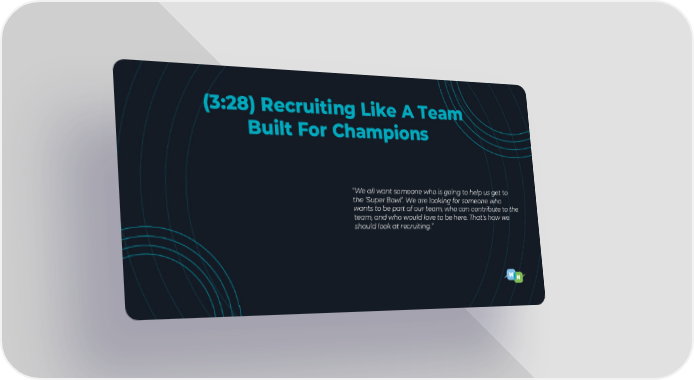 “We all want someone who is going to help us get to the ‘Super Bowl’. We are looking for someone who wants to be part of our team, who can contribute to the team, and who would love to be here. That's how we should look at recruiting.” (3:28) Recruiting Like A Team Built For Champions