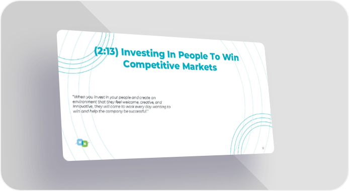 8 (2:13) Investing In People To Win Competitive Markets “When you invest in your people and create an environment that they feel welcome, creative, and innovative, they will come to work every day wanting to win and help the company be successful.”