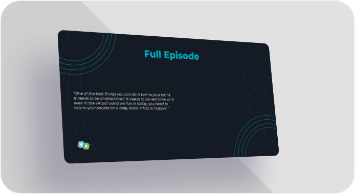 Full Episode “One of the best things you can do is talk to your team. It needs to be bi-directional. It needs to be real time, and even in the virtual world we live in today, you need to talk to your people on a daily basis. It has to happen.”
