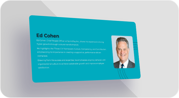 Ed Cohen Ed Cohen, Chief People Officer at SprintRay Inc., shares his expertise in driving hyper-growth through cultural transformation. He highlights the "Three C’s" framework: Culture, Competency, and Contribution, emphasizing its importance in creating a supportive, performance-driven workplace. Drawing from his success and expertise, he emphasizes aligning behavior with organizational culture to achieve sustainable growth and improve employee satisfaction.