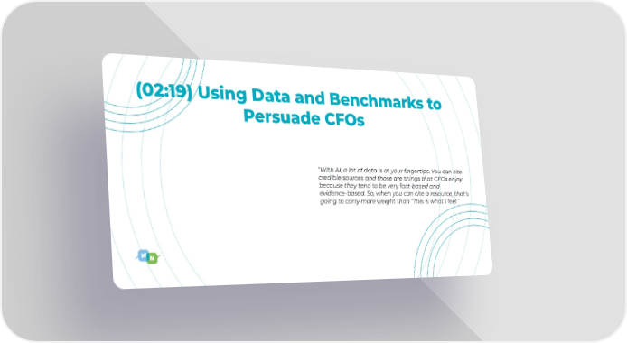 (02:19) Using Data and Benchmarks to Persuade CFOs “With AI, a lot of data is at your fingertips. You can cite credible sources and those are things that CFOs enjoy because they tend to be very fact-based and evidence-based. So, when you can cite a resource, that's going to carry more weight than “This is what I feel.”