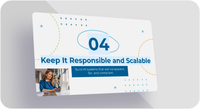 Keep It Responsible and Scalable 04 Build AI systems that are transparent, fair, and compliant.