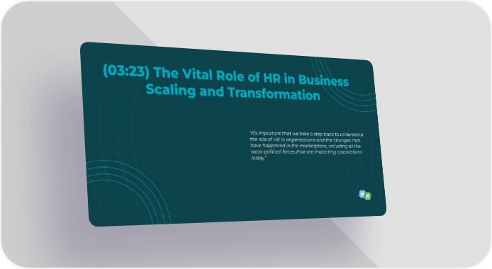 (03:23) The Vital Role of HR in Business Scaling and Transformation “It’s important that we take a step back to understand the role of HR in organizations and the changes that have happened in the marketplace, including all the socio-political forces that are impacting corporations today.”