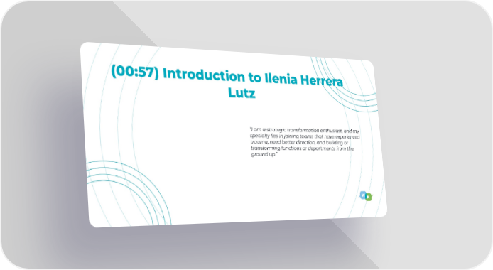 (00:57) Introduction to Ilenia Herrera Lutz “I am a strategic transformation enthusiast, and my specialty lies in joining teams that have experienced trauma, need better direction, and building or transforming functions or departments from the ground up.”