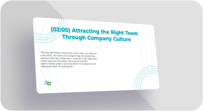 (02:05) Attracting the Right Team Through Company Culture “During the deeper interviews, that's when you discover cultural fit. You start discussing things like leadership style and the key influences in a person's life. Especially when they ask me about the culture and the team—that’s when I dive into what I'm trying to build here and what I'm looking for.”