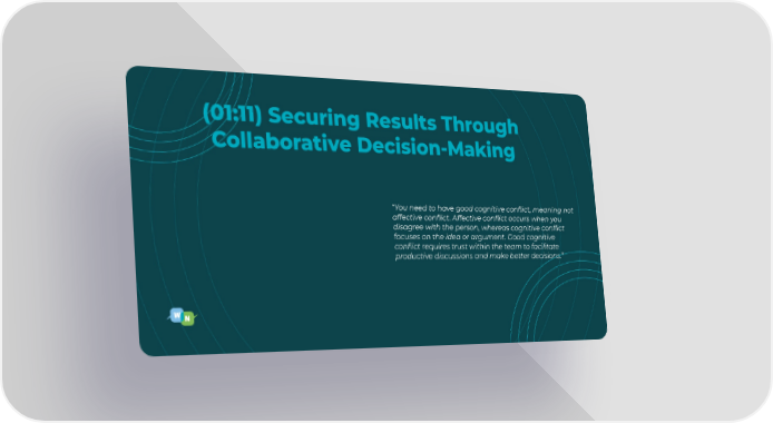 (01:11) Securing Results Through Collaborative Decision-Making “You need to have good cognitive conflict, meaning not affective conflict. Affective conflict occurs when you disagree with the person, whereas cognitive conflict focuses on the idea or argument. Good cognitive conflict requires trust within the team to facilitate productive discussions and make better decisions.”