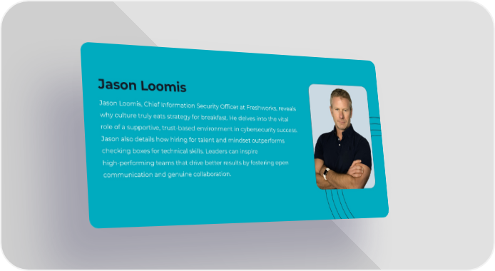 Jason Loomis Jason Loomis, Chief Information Security Officer at Freshworks, reveals why culture truly eats strategy for breakfast. He delves into the vital role of a supportive, trust-based environment in cybersecurity success. Jason also details how hiring for talent and mindset outperforms checking boxes for technical skills. Leaders can inspire high-performing teams that drive better results by fostering open communication and genuine collaboration.