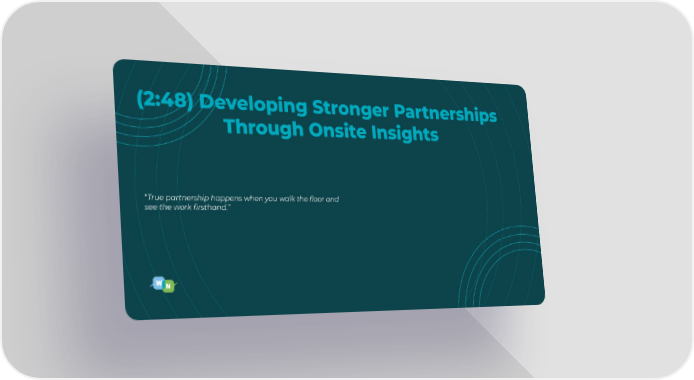 (2:48) Developing Stronger Partnerships Through Onsite Insights “True partnership happens when you walk the floor and see the work firsthand.”
