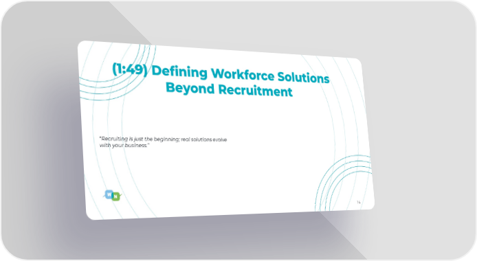 14 (1:49) Defining Workforce Solutions Beyond Recruitment “Recruiting is just the beginning; real solutions evolve with your business.”