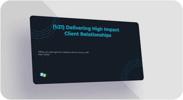12 (1:21) Delivering High Impact Client Relationships “When you show genuine interest, clients trust you with their future.”