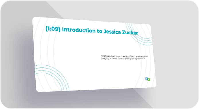 (1:09) Introduction to Jessica Zucker “Staffing proved more meaningful than I ever imagined, merging business needs with people’s aspirations.”