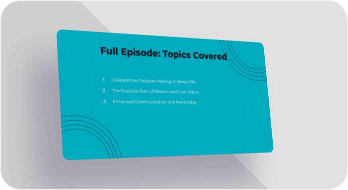 Full Episode: Topics Covered 1. Collaborative Decision-Making in Nonprofits 2. The Essential Role of Mission and Core Values 3. Enhanced Communication and Mentorship
