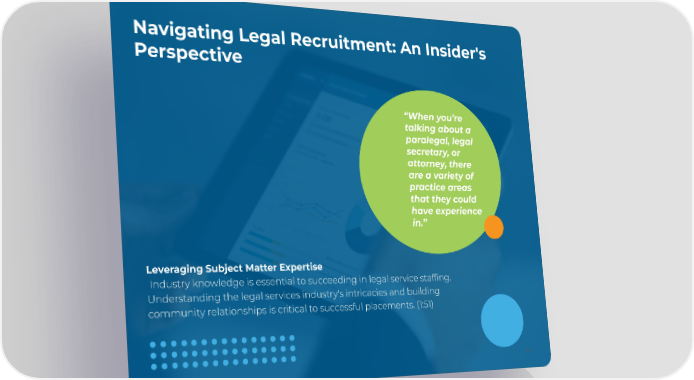 Navigating Legal Recruitment: An Insider's Perspective “When you’re talking about a paralegal, legal secretary, or attorney, there are a variety of practice areas that they could have experience in.” Leveraging Subject Matter Expertise Industry knowledge is essential to succeeding in legal service staffing. Understanding the legal services industry's intricacies and building community relationships is critical to successful placements. (1:51) 4