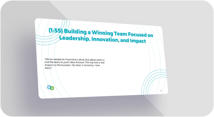 (1:55) Building a Winning Team Focused on Leadership, Innovation, and Impact “We’ve created an innovative culture that allows both us and the team to push ideas forward. This has had a real impact on the business. My team is amazing—I love them.” 14