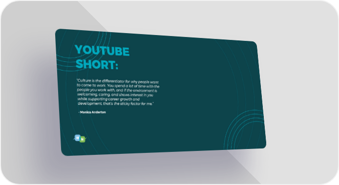 YOUTUBE SHORT: “Culture is the differentiator for why people want to come to work. You spend a lot of time with the people you work with, and if the environment is welcoming, caring, and shows interest in you while supporting career growth and development, that’s the sticky factor for me.” - Monica Anderton