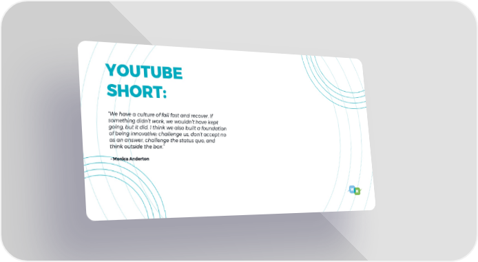 YOUTUBE SHORT: “We have a culture of fail fast and recover. If something didn’t work, we wouldn’t have kept going, but it did. I think we also built a foundation of being innovative: challenge us, don’t accept no as an answer, challenge the status quo, and think outside the box.” - Monica Anderton