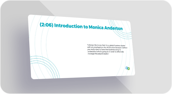 (2:06) Introduction to Monica Anderton “I always like to say that I’m a global business leader with an emphasis on the HR function because I believe you really need to have that business savvy to understand what's going on in order to effectively manage the people aspect.”
