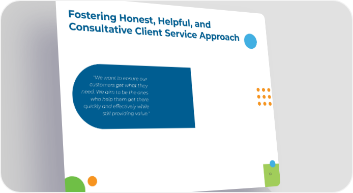 Fostering Honest, Helpful, and Consultative Client Service Approach "We want to ensure our customers get what they need. We aim to be the ones who help them get there quickly and effectively while still providing value." 10