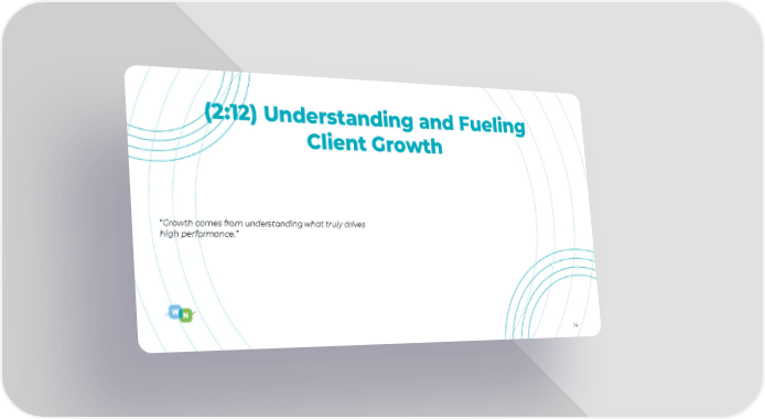 14 (2:12) Understanding and Fueling Client Growth “Growth comes from understanding what truly drives high performance.”