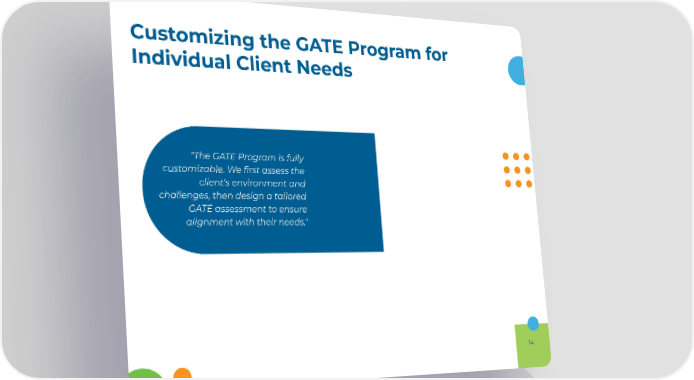 Customizing the GATE Program for Individual Client Needs "The GATE Program is fully customizable. We first assess the client's environment and challenges, then design a tailored GATE assessment to ensure alignment with their needs." 14