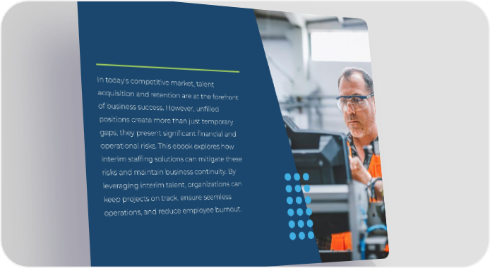 In today's competitive market, talent acquisition and retention are at the forefront of business success. However, unfilled positions create more than just temporary gaps; they present significant financial and operational risks. This ebook explores how interim staffing solutions can mitigate these risks and maintain business continuity. By leveraging interim talent, organizations can keep projects on track, ensure seamless operations, and reduce employee burnout.