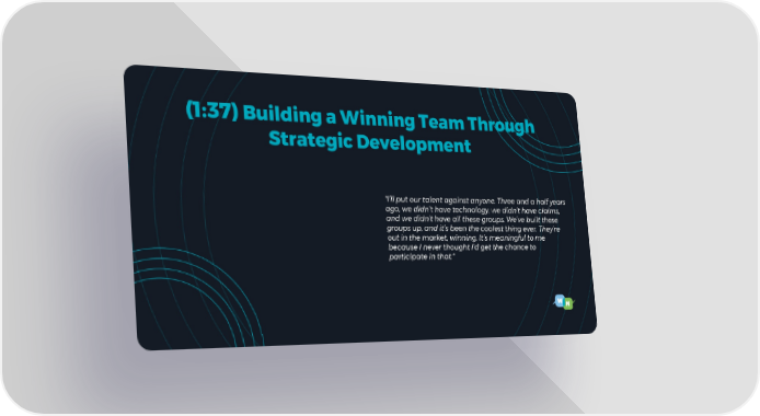 (1:37) Building a Winning Team Through Strategic Development "I’ll put our talent against anyone. Three and a half years ago, we didn’t have technology, we didn’t have claims, and we didn’t have all these groups. We’ve built these groups up, and it’s been the coolest thing ever. They’re out in the market, winning. It’s meaningful to me because I never thought I’d get the chance to participate in that."
