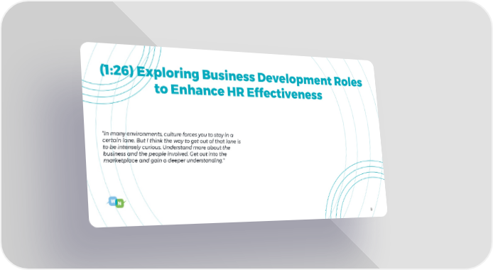 (1:26) Exploring Business Development Roles to Enhance HR Effectiveness "In many environments, culture forces you to stay in a certain lane. But I think the way to get out of that lane is to be intensely curious. Understand more about the business and the people involved. Get out into the marketplace and gain a deeper understanding." 8
